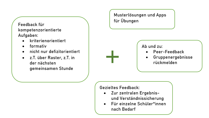 - Die Schüler*innen arbeiten selbständig und individuell. Sie evaluieren regelmäßig, welche Strukturen sie schon gut können und setzen sich Ziele für die nächsten Schritte.